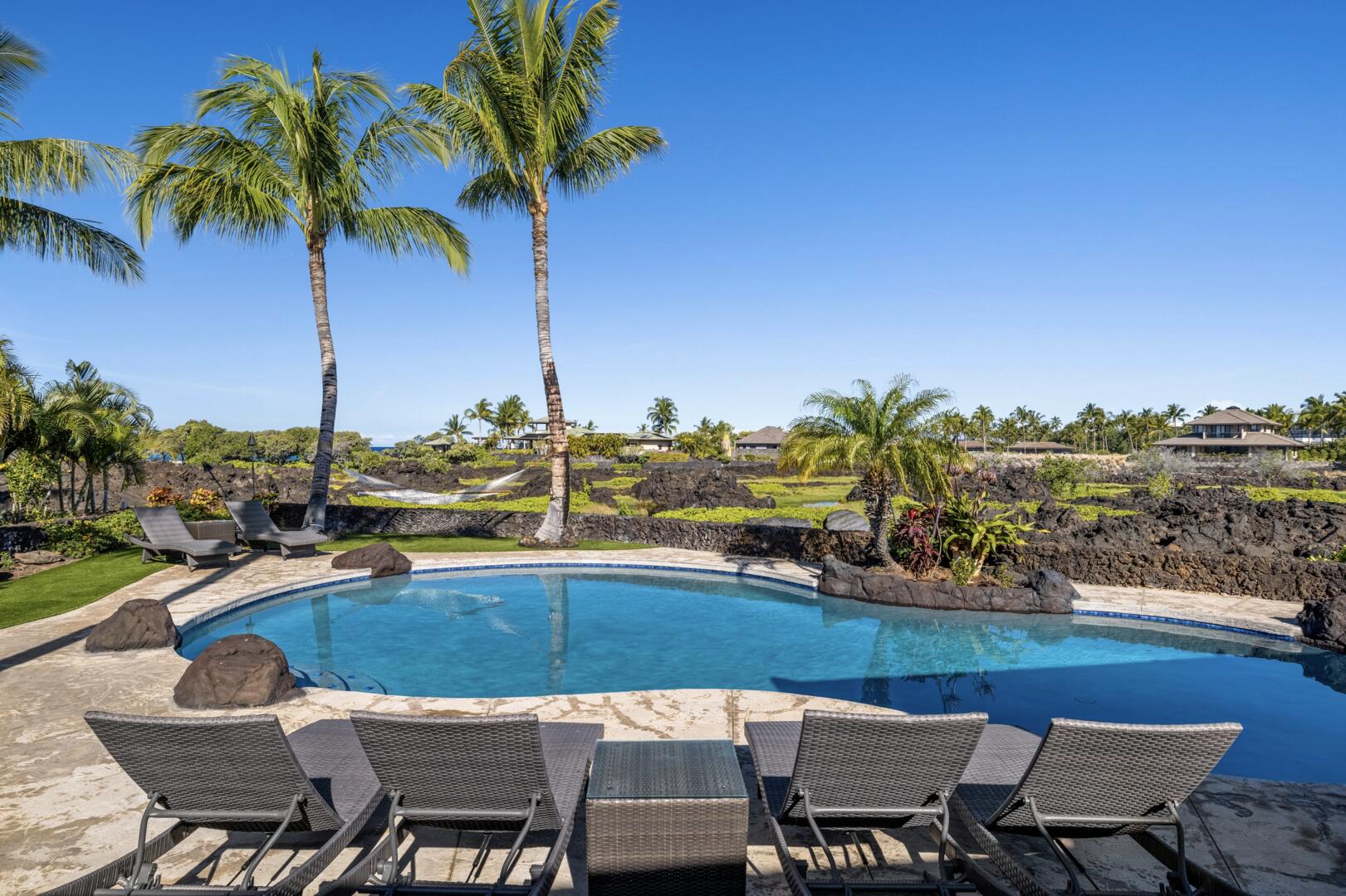 Kolea 14 is a spectacular five-bedroom oceanfront estate that offers true luxury in the most exclusive section of the world-renowned Waikoloa Resort. The home offers spacious luxury with a solar heated pool, a spa with a waterfall, and a large backyard that offers privacy, plenty of comfortable seating and unobstructed views of the Pacific Ocean and rare native fish ponds.