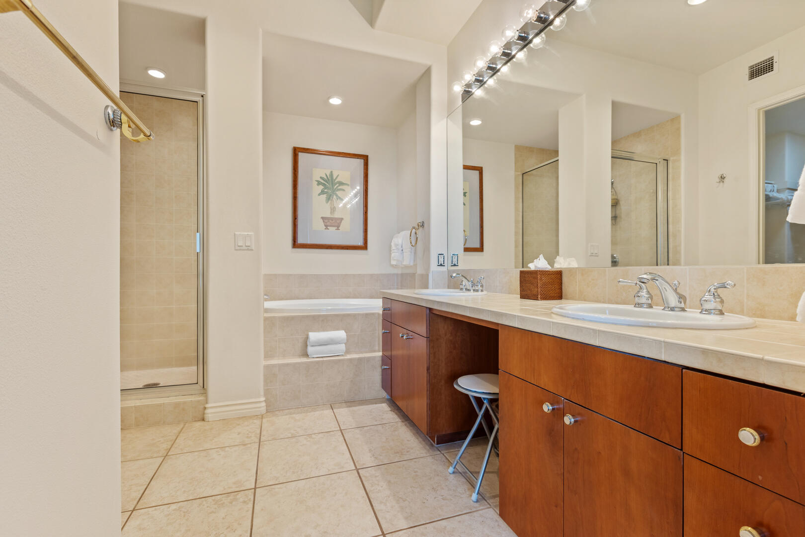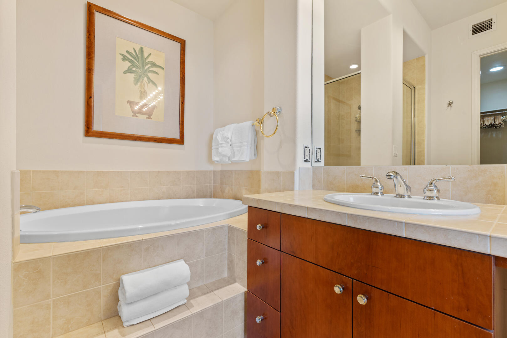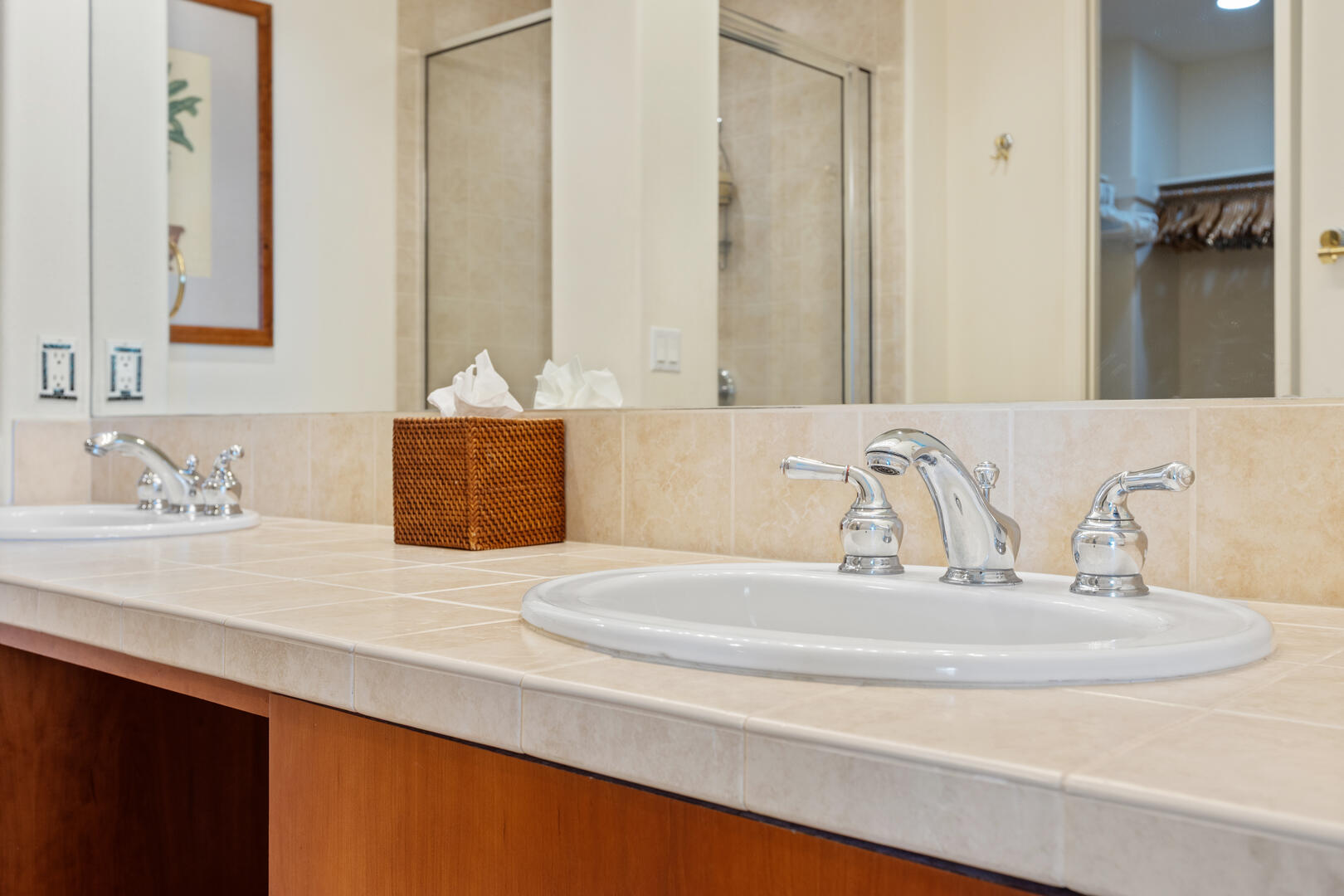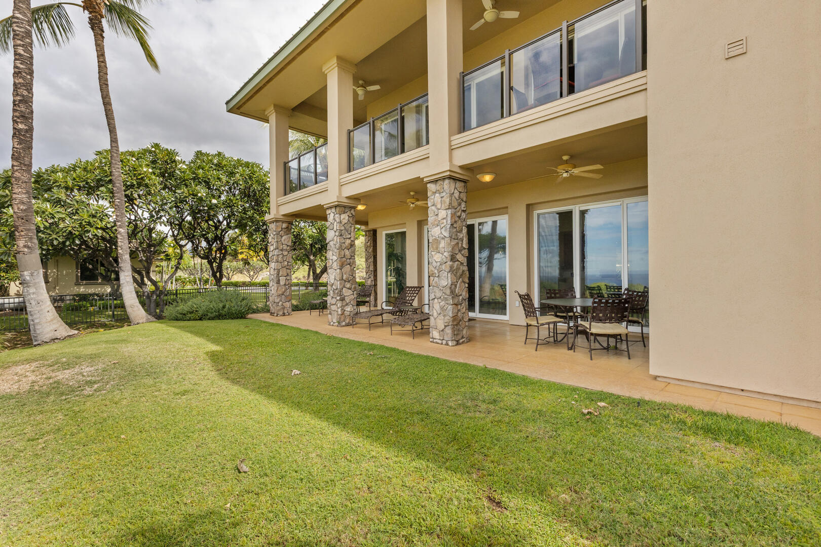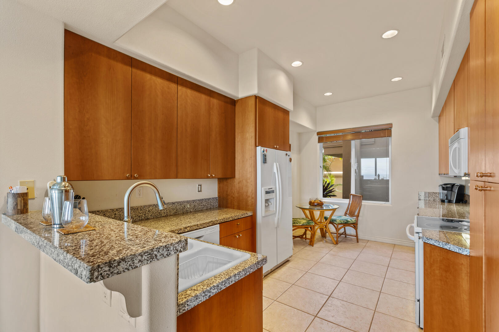 Primely located ground-floor condo with expansive ocean views at the exclusive Mauna Kea Resort, Kumulani A1 has received over 70 five star reviews. This luxurious two bedroom, two bath residence with den was originally selected and furnished as a model because of its sweeping uninterrupted views of ocean, golf course and pond. The spacious living area offers palm-printed, newly reupholstered rattan furnishings, a queen sofa bed that will sleep 2 people, indoor and outdoor dining, and a den area that serves as a media room with a Smart TV. The master bedroom has island inspired decor, a king bed, Roku TV, en-suite, walk-in closet and ocean views while the second bedroom offers two twin beds and TV with basic cable. You will enjoy breathtaking views from the 375 sq. ft. wrap-around lanai, perfect for sunset views. Amenities include fast wireless internet access at no additional charge, central air conditioning, ceiling fans for natural ventilation, and a fully equipped kitchen.