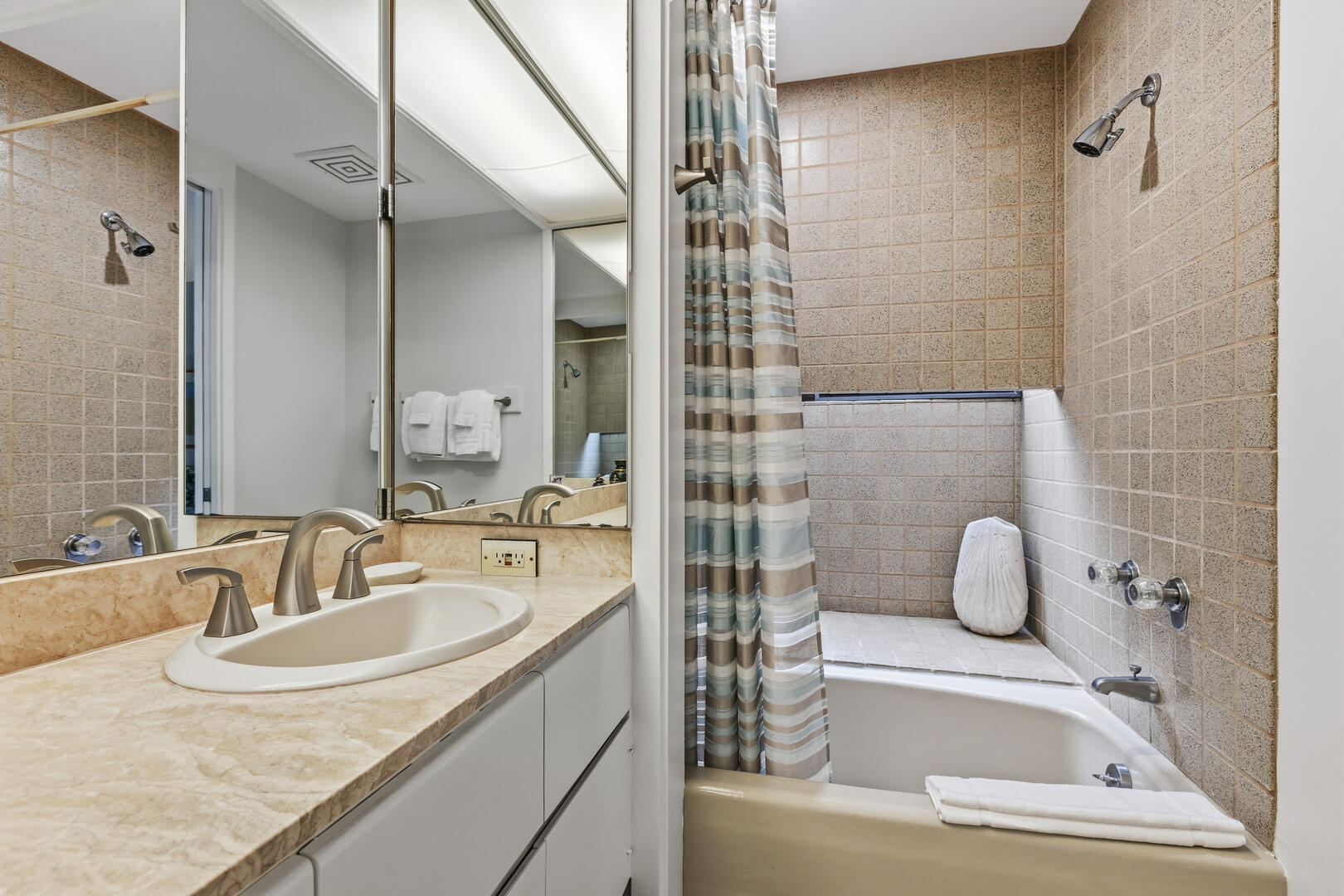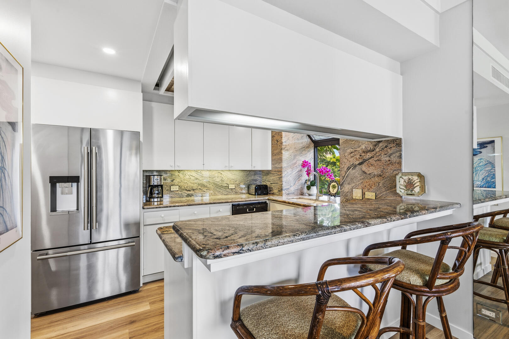 • Enjoy access to the Mauna Lani Beach Club, where you may use the beach chairs and cabanas or dine seaside at Napua Restaurant. A key card for one vehicle will be provided in your rental to park in the private parking area.