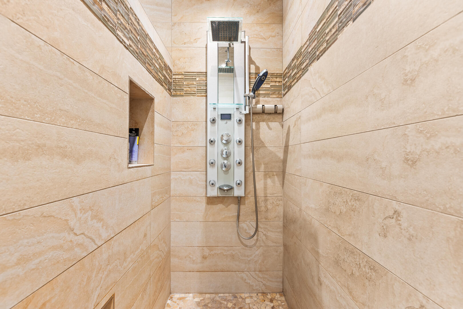 • Large (22' x 60') heated swimming pool with two shallow areas that can fit 8 lounge chairs
