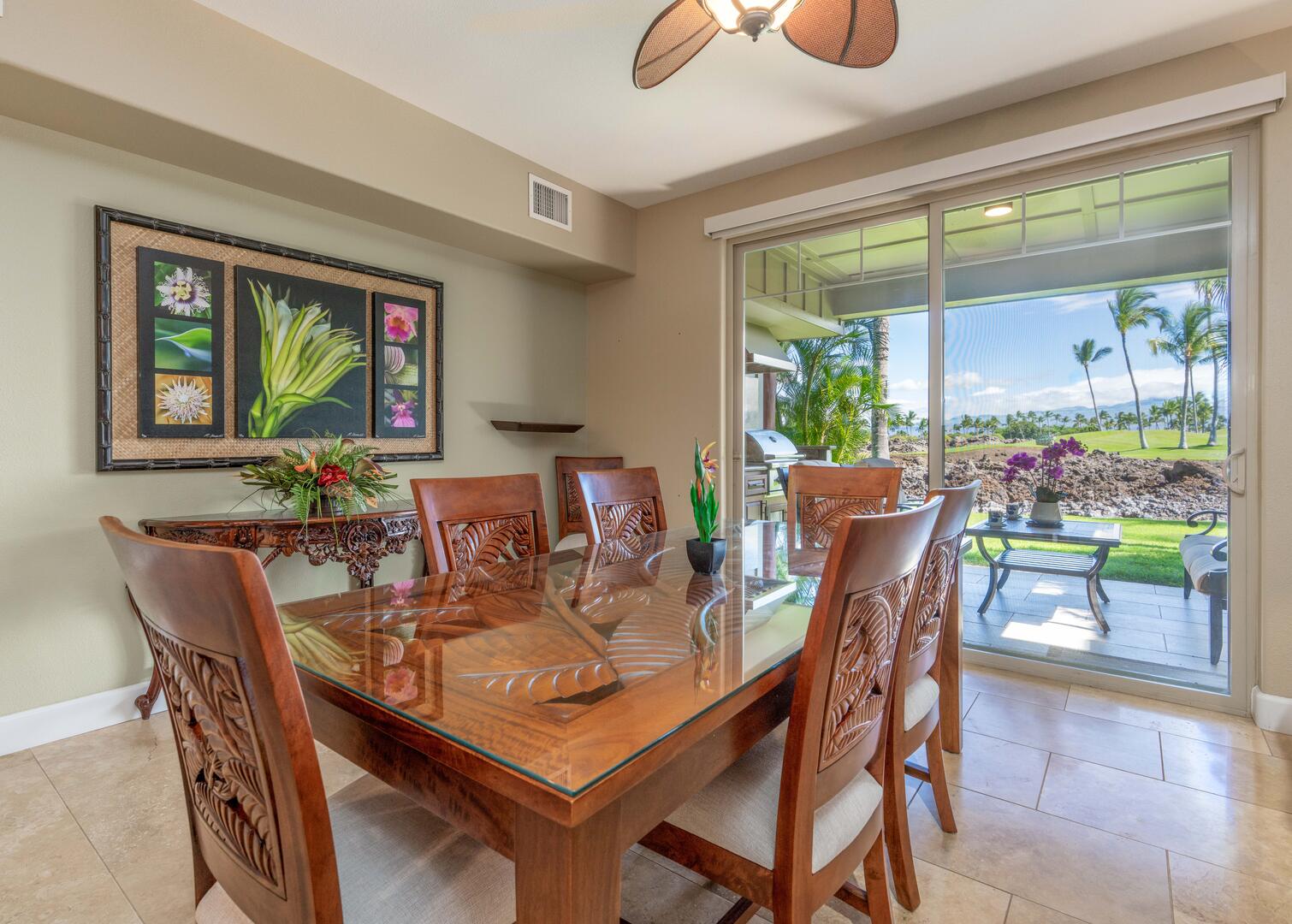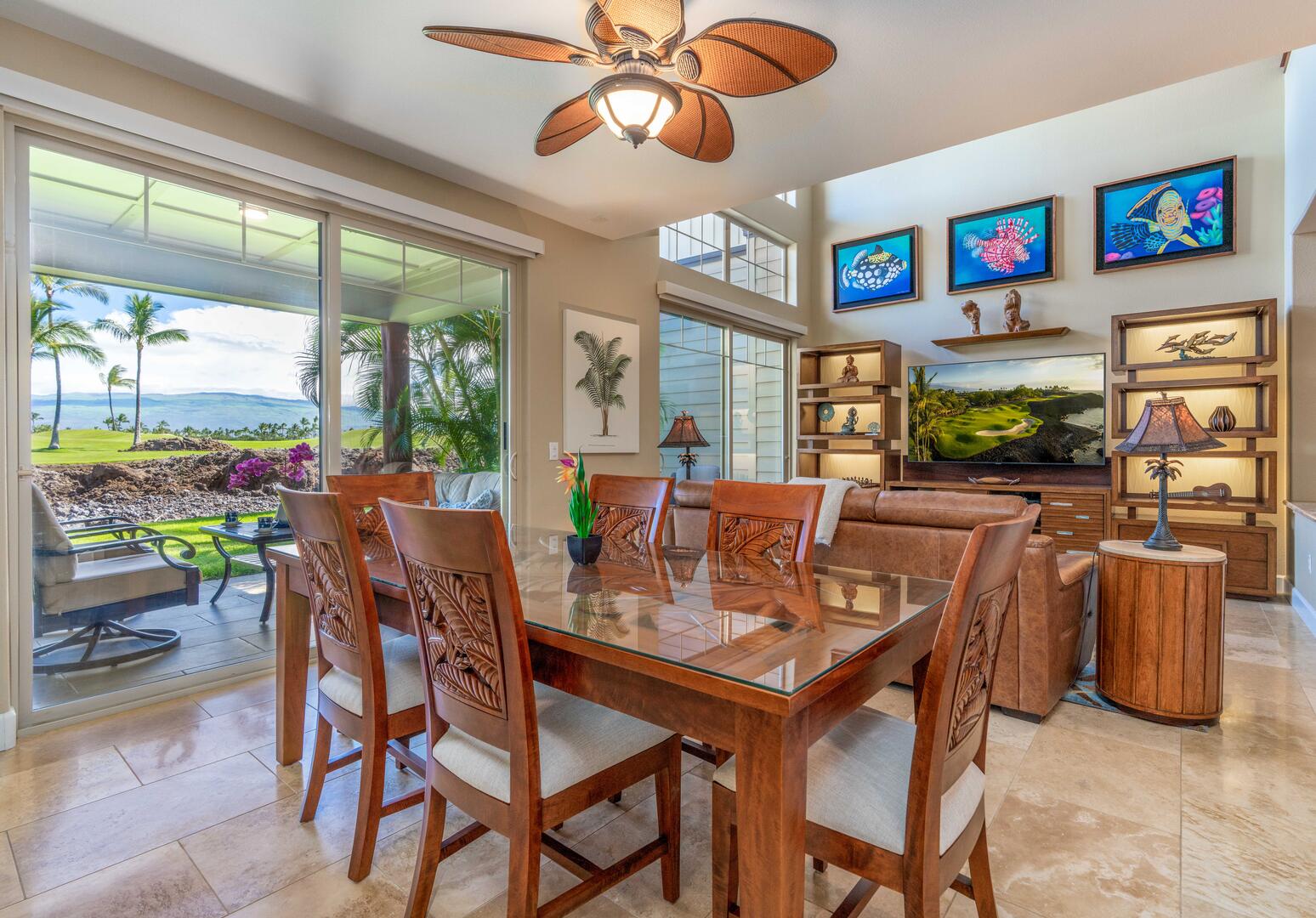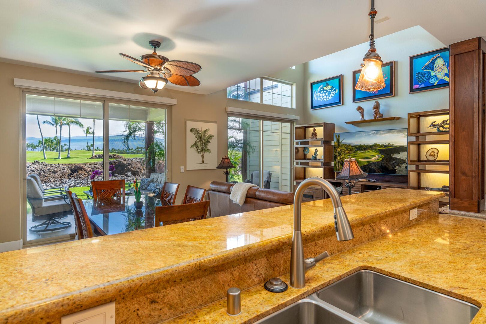 The old adage: "a picture is worth a 1000 words" is highly evident with this unit. We are 6 adults with varying interests, golf, hiking, relaxation, beach and pool enthusiasts....and most of all the beauty of this wonderful Big Island. This is the 3rd visit to Mauna Lani and our 1st stay in the Golf Villas. This unit was very clean and had plenty of towels and linens, even beach towels to take to the private beach/cove in the resort. The appliances in this unit were all upgraded brands (clean and in excellent condition) from the stove to dishwasher to outdoor grill and washer and dryer. The only things missing was enough dining room chairs (only 4x for 6x people). Overall, and excellent unit and we would definitely recommend and visit once again. Mahalo! ~David I. (October 2023)